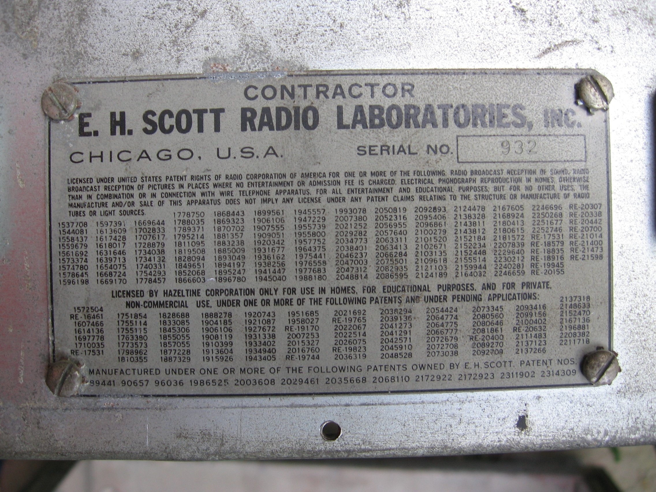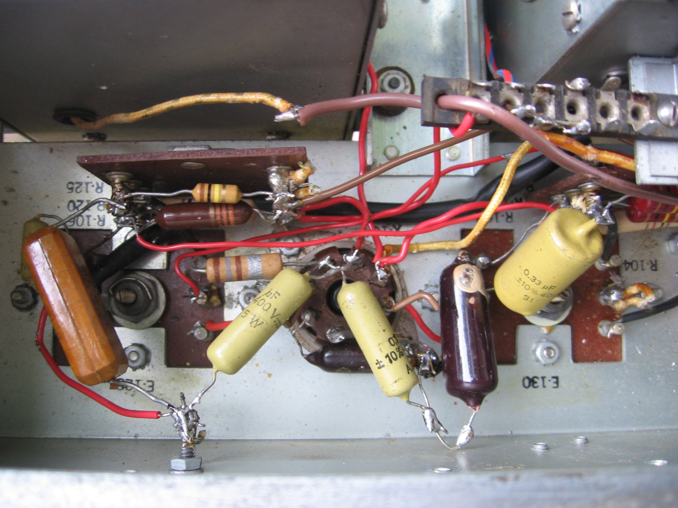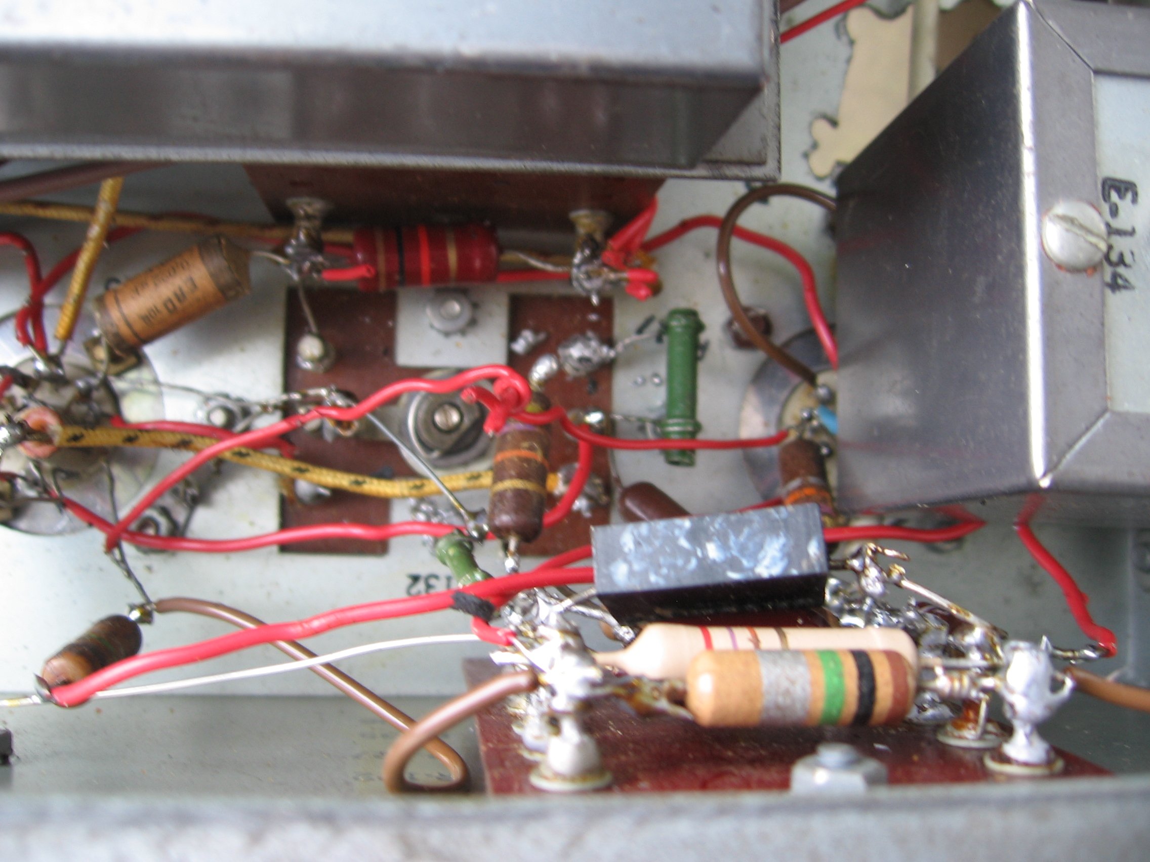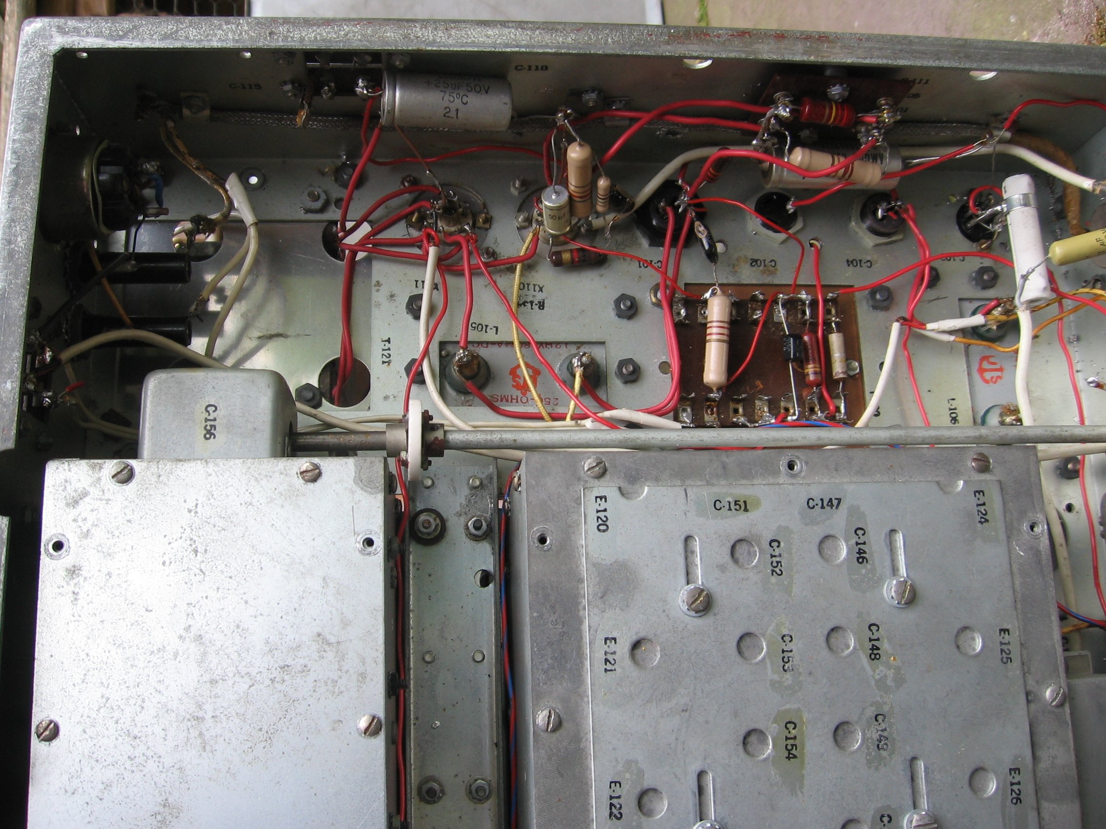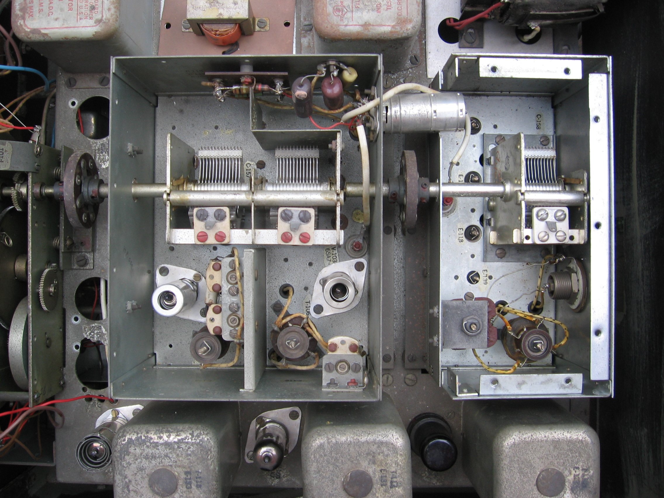 The photos show my RCH. This receiver was 'modified' for noval tubes and 220 Volts mains. Most vital parts are still present so it will be possible to restore it for about 90%. (It's huge and heavy!) | ||||